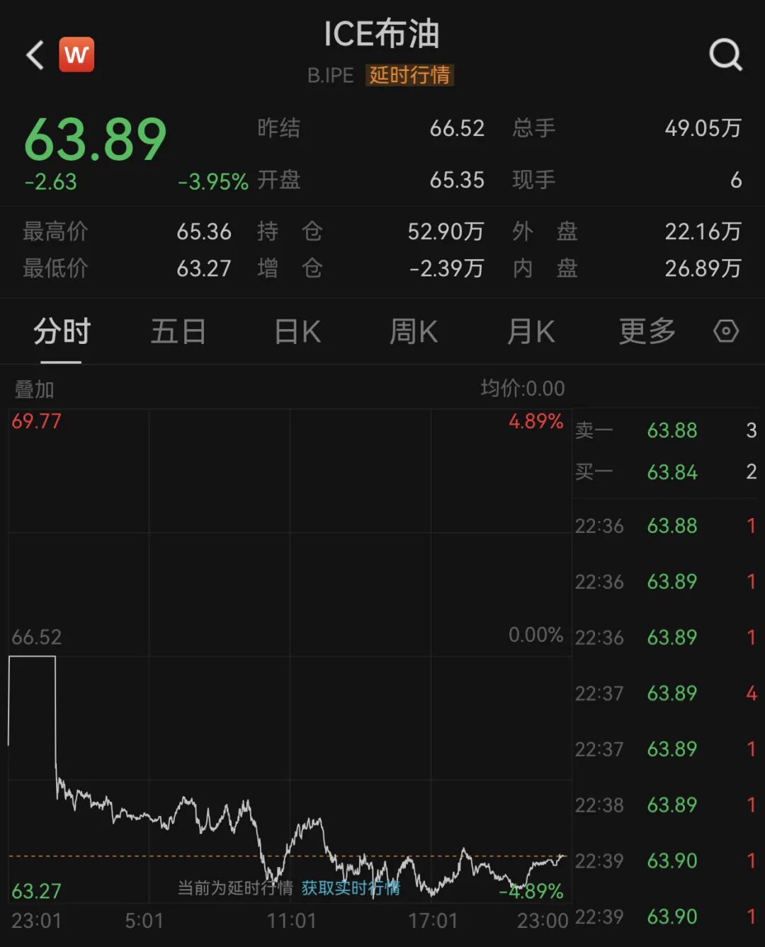 市场上,当天,国际油价大跌。其中,NYMEX WTI原油跌超4%,ICE布油跌近4%。