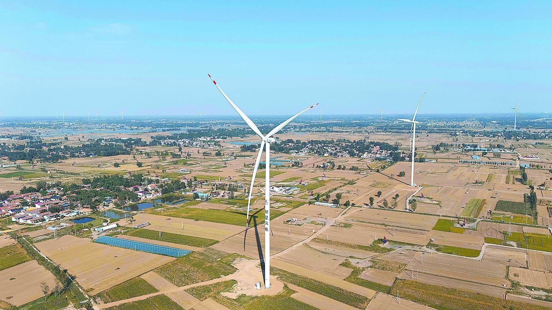 截至目前,新星公司已建成3个风电项目,装机规模182兆瓦。图为2024年建成的中国石化首个百兆瓦级风电项目——新星公司中原油田112兆瓦风电项目。曹海峰 摄