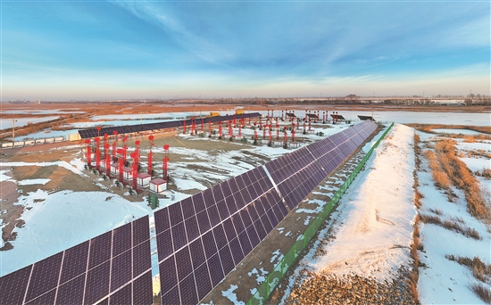 吉林油田坚持保护生态和发展生态旅游双向发力,利用井场及周边空地,建设了风光发电、光热、地热、空气源热、储能、二氧化碳注入等多能互补供能模式,全力将位于查干湖畔的新立Ⅲ区块打造成零碳示范区。